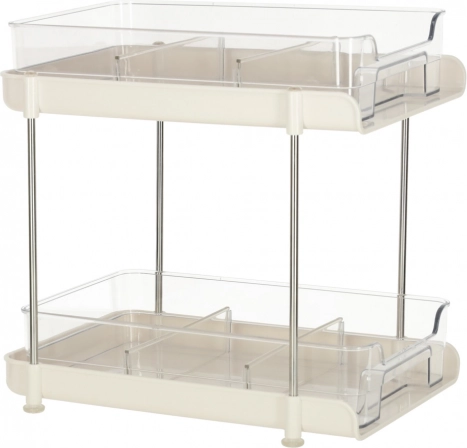 Two-tier acrylic organizer with pull-out shelves and dividers