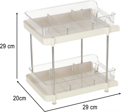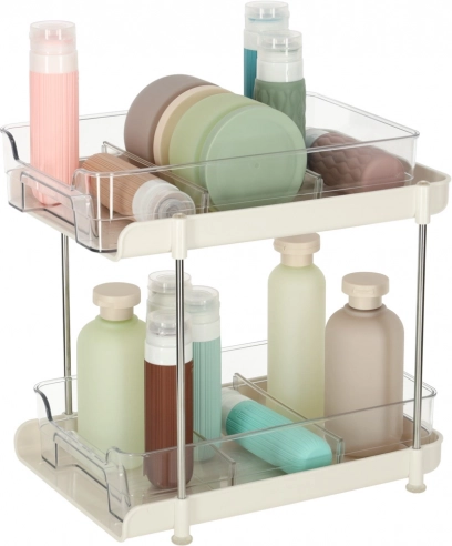 A practical two-tier organizer with clear drawers neatly stores cosmetics, spices, and office supplies. Thanks to the pull-out shelves, dividers, and transparent design, you’ll have everything at h... Show more