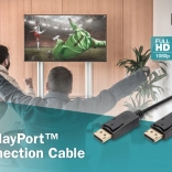 High-quality 10 m DisplayPort cable for reliable digital video and audio transmission. Ideal for connecting a computer or laptop to a monitor with a DisplayPort connector. Thanks to sturdy latches, the connector sits securely in the port and ensures a stable connection. Suitable for demanding applications such as CAD/CAM, GIS, 3D modeling, and real-time simulation. Supports Full HD 1080p at 60 Hz for smooth visuals.