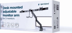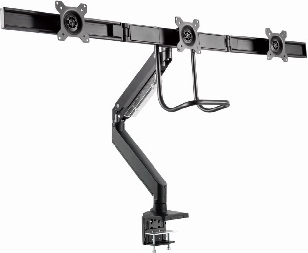 Adjustable arm for mounting up to three monitors, ideal for maximizing your workspace and ensuring ergonomic comfort.