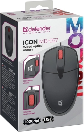 Silent wired mouse DEFENDER ICON MB-057 1000 DPI black