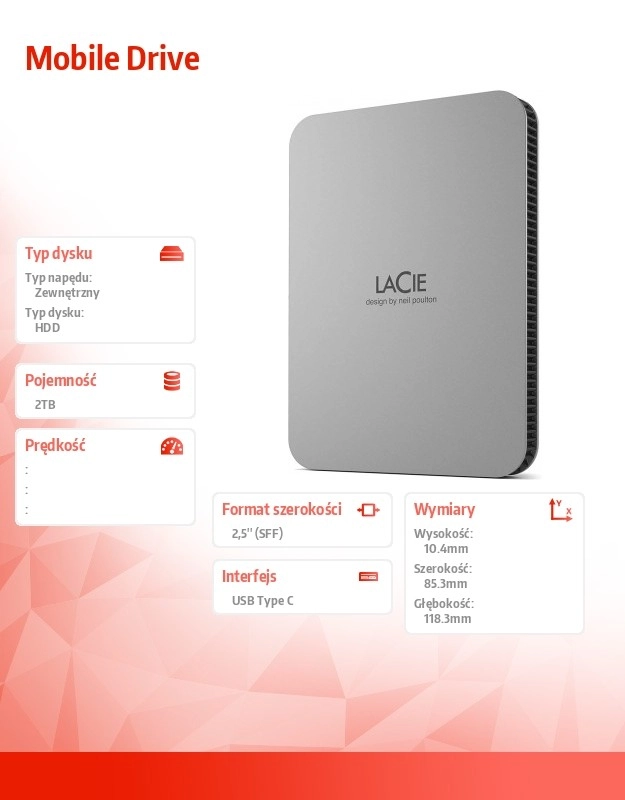 Enjoy premium design and large capacity with the LaCie Mobile Drive. Developed in collaboration with designer Neil Poulton, this drive is not only aesthetically pleasing but also eco-friendly due to the use of recyclable materials.