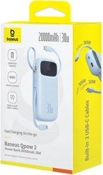 Baseus QPow2 Power Bank 20,000 mAh 30 W with built-in USB‑C cable (blue)