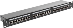 This shielded Cat6 patch panel is ideal for main and intermediate distribution points in modern data networks. It is used to terminate and organize twisted pair cabling in 19" rack cabinets, ensuring clean routing and stable connections. The metal construction and black RAL9004 finish guarantee durability and a professional appearance.