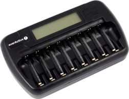The EVERACTIVE NC-800 charger is designed for fast and reliable charging of Ni-MH batteries. Thanks to eight independent slots, you can charge up to 8 AA or AAA cells simultaneously, even with different capacities and from different manufacturers. Each cell is monitored separately for optimal battery care.