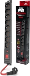 The ACAR R8 Power is a reinforced surge-protected power strip from the acar-AXON family, designed for users who require reliable protection and a high load of up to 3680 W. It provides eight 16A/250V grounded sockets in a body only 44.4 cm long, so it fits even on a desk.