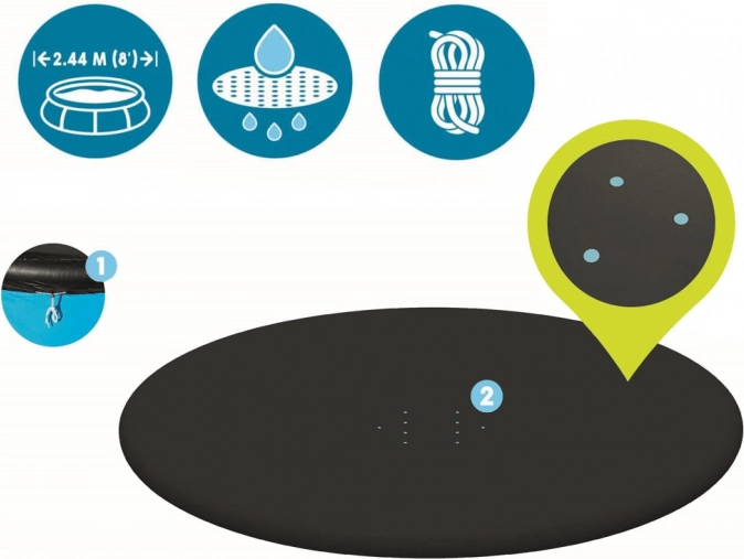 Choose a smart solution for cleaner water with less maintenance. The cover is suitable for round easy-set pools with an inflatable ring with a diameter of 244 cm (Fast Set series). Its compact packaging is easy to store and also suitable as a gift.