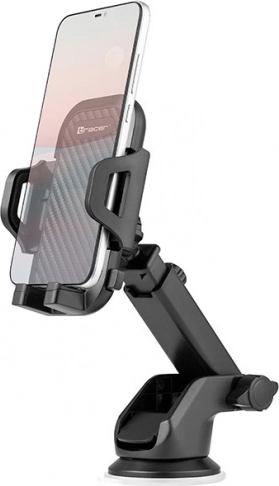The universal TRACER U33 Telescopic car holder keeps your smartphone secure while driving. It offers a strong suction cup for the windshield or dashboard, a telescopic arm up to 17 cm, a 270° swivel joint, and a stable grip, making it ideal for navigation and hands-free use.