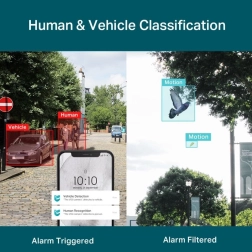 • People and vehicle classification: More accurate alerts thanks to distinguishing between people and other objects.