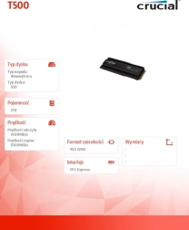 The Crucial T500 is a modern PCIe Gen4 NVMe SSD designed for demanding gamers and content creators. With read speeds up to 7,400 MB/s and write speeds up to 7,000 MB/s, it significantly shortens loading times, accelerates work with large files, and delivers a more responsive system. The integrated heatsink helps maintain optimal temperatures and consistent performance even under sustained load.