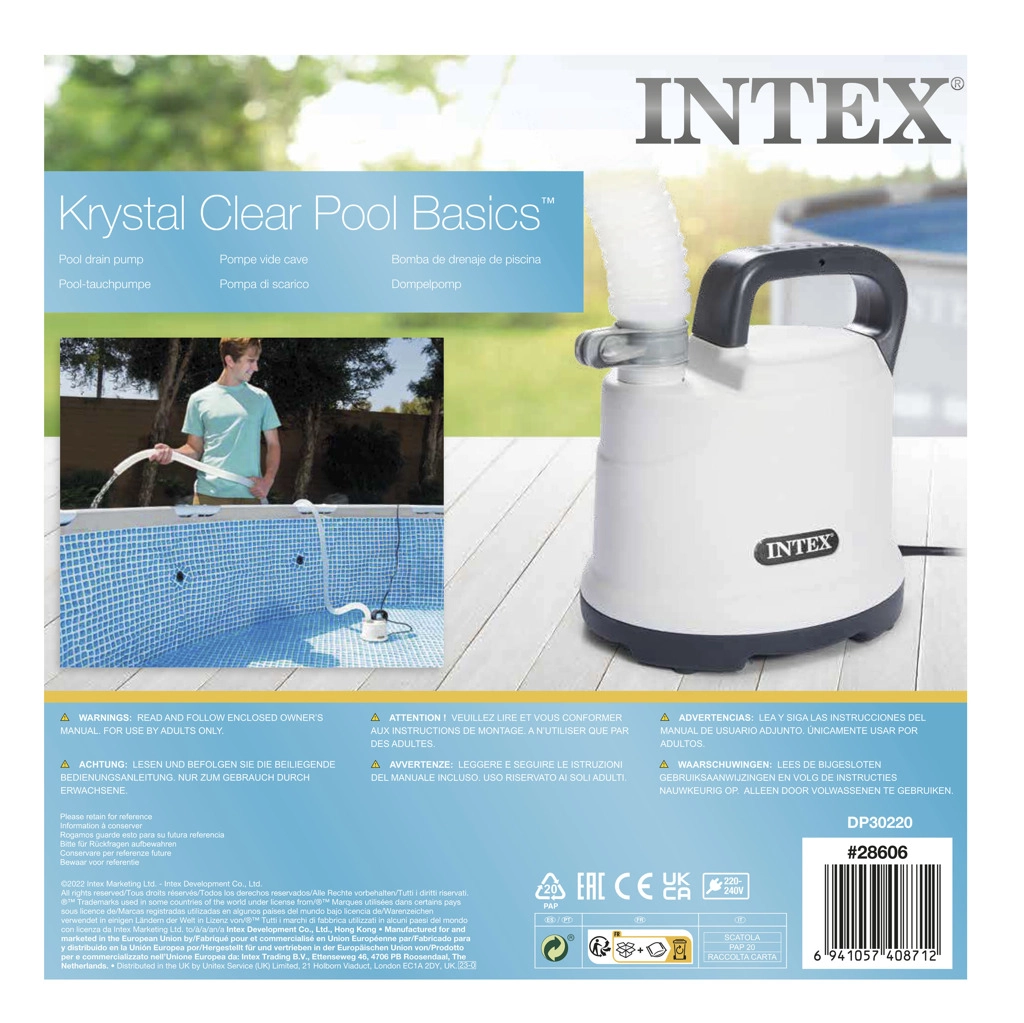Pump 220-240 V. Hose length 5 m. Pumps 3,595 liters of water per hour. Maximum depth 127 cm. Cable length 10 m.