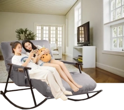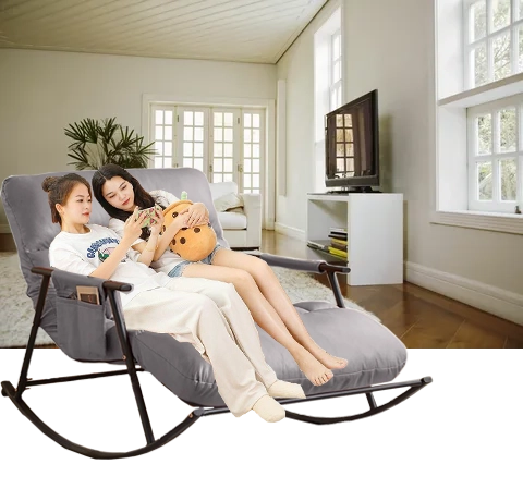 The elegant grey rocking loveseat combines modern design with a durable build. Soft, quilted cushions with premium PP Cotton filling provide support for the back and legs while reading, watching TV, or relaxing together. The black metal frame ensures smooth and safe rocking you’ll love in the living room or on a covered terrace.