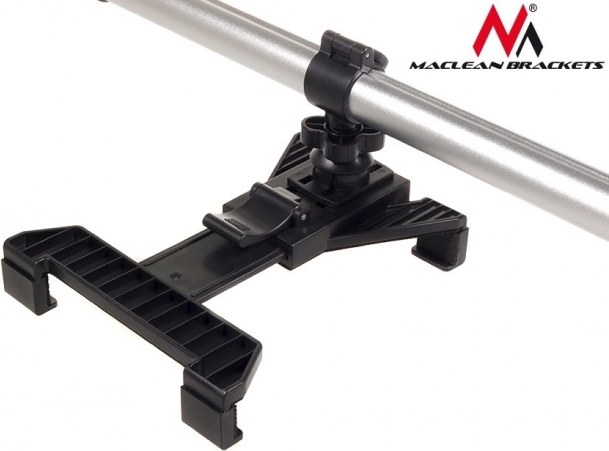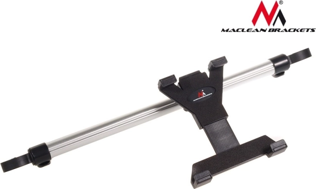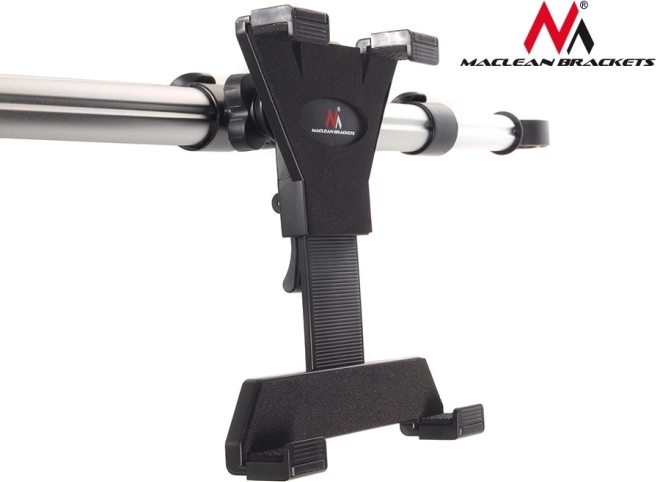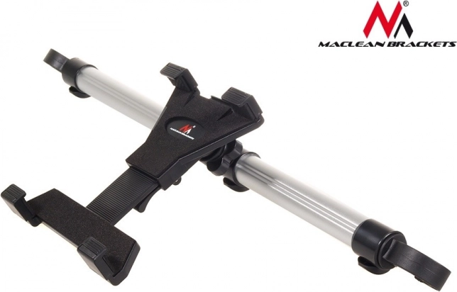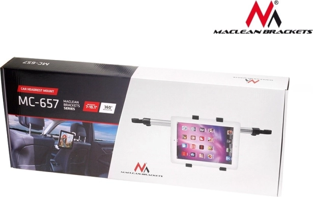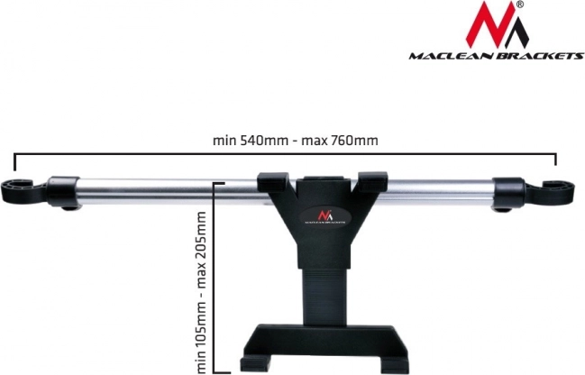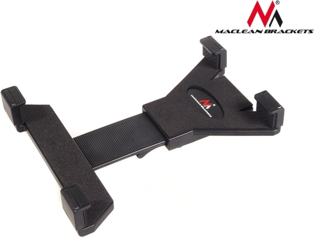 Universal car holder for tablets, which can be easily mounted between seats to the driver's and passenger's headrests. Adjustable arm length allows installation in almost any car.