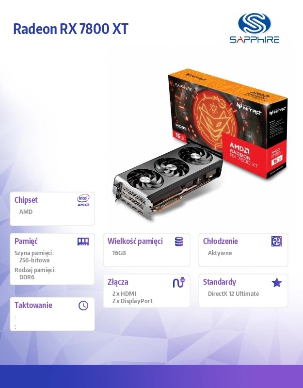 Step into smooth WQHD and 4K gaming with the Sapphire NITRO+ Radeon RX 7800 XT Gaming OC. Three massive fans, a quality heatsink, and a sturdy metal build deliver quiet operation and low temperatures even during long gaming marathons. Thanks to 16 GB of GDDR6 memory and a 256-bit bus, it handles demanding textures, modern effects, and creative workloads.
