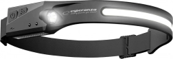 The Esperanza ATHENA headlamp offers two lighting options that can be toggled with a button: COB LED strip and XPE flashlight. The COB LED covers a 230° angle, allowing it to illuminate large areas. The XPE flashlight is suitable for precise lighting of work surfaces at close range.