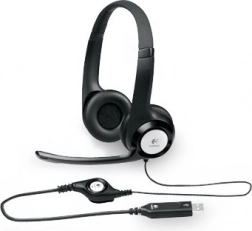 The universal LOGITECH H390 computer headset with USB plug-and-play delivers clear digital audio, a comfortable padded headband, and a noise-canceling swivel microphone. With in-line volume controls, you can easily adjust audio and mute the mic during calls.