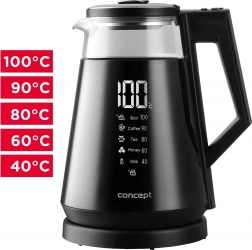 The kettle allows temperature regulation in four steps (40°C, 60°C, 80°C, 100°C). Thanks to the clear digital display, you will have a perfect overview of the set program and current water temperature. The KEEP WARM function maintains the set temperature for up to 4 hours.