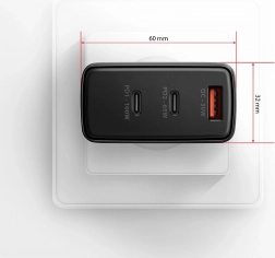 - 3 ports: 2× USB‑C (PD up to 100 W) + 1× USB‑A (QC up to 30 W)