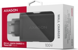 The powerful travel wall charger AXAGON GaN 100 W charges up to three devices at the same time. It offers 2× USB‑C and 1× USB‑A, support for PD 3.0, QC 4+, PPS, Samsung SFC 2.0 45 W and Apple PD 20/27 W. Thanks to GaN technology, it is compact, efficient, and safe for laptops, phones, and tablets.