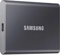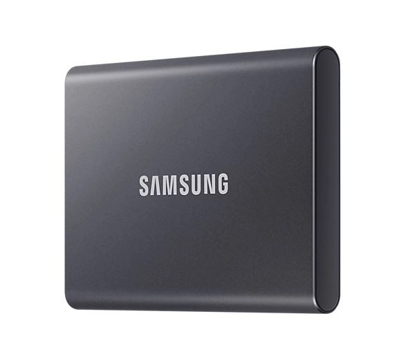 External SSD Samsung Portable T7 is a lightweight and compact external hard drive with high data transfer speed, protection, and easy storage. Ideal for work and play!