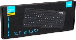 The Wireless Keyboard iBOX Kallisto offers a multifunctional solution for your devices. It provides both wireless USB 2.4 GHz and Bluetooth connectivity, making it a universal choice for computers and mobile devices. A special slot allows for convenient placement of a mobile device in front of the user, and the function of switching between paired devices makes working in diverse environments easy.