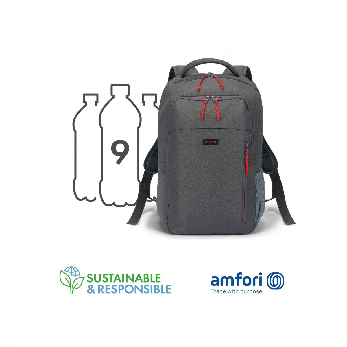 The backpack is made from material equivalent to 9 recycled PET bottles— a durable, eco-friendly choice.