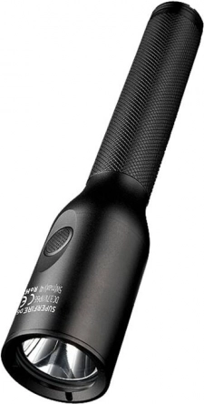 The built-in 3.7 V / 4400 mAh rechargeable battery provides up to 8 h in high mode and up to 16 h in work mode. It features a charge status indicator for timely recharging and ergonomic one-button control that’s comfortable even with gloves. The tail end includes a practical safety hammer for emergency glass breaking.