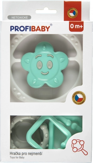 Rattle set – chain and star/flower. A safe, colorful, and stimulating toy for babies. Stimulates hearing, sight, and touch; trains grasp reflex.