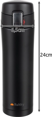 The stylish and functional RUHHY thermal mug is an ideal choice for everyday use at work, school, and on the go. Double insulation reliably maintains temperature, while the secure lid with a lock prevents unwanted opening and leaks – even when tipped over. The elegant black design and lightweight build (only 0.27 kg) ensure comfortable carrying.