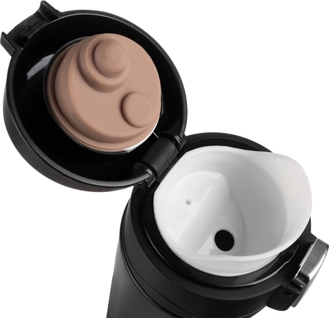 Easy one-button opening provides quick access to your drink, while the hygienic and comfortable spout makes sipping on the go a pleasure. The thermal mug is made of safe materials (stainless steel and PP), is easy to clean, and thanks to its universal dimensions fits most car cup holders.
