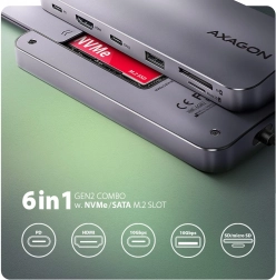 AXAGON HMC-6GM2 is an ideal 6-in-1 docking station for MacBook and other notebooks, offering: