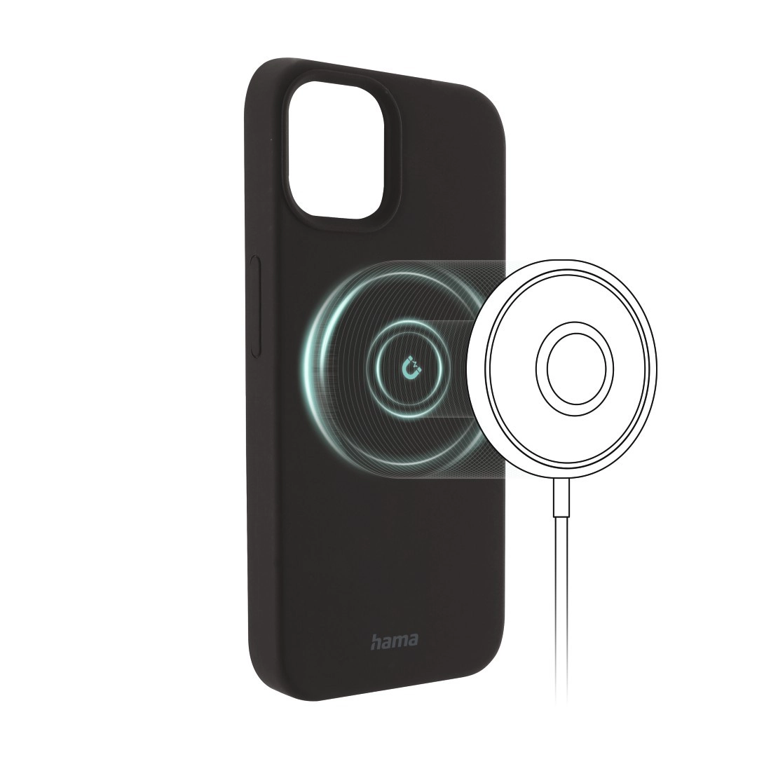 Hama MagCase is a precisely shaped silicone case for iPhone 14 with a built-in magnetic ring for MagSafe. Thanks to precise alignment on chargers, you get stable and fast wireless charging without unnecessary shifting.
