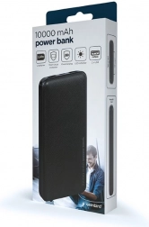 This black power bank with a capacity of 10000 mAh is the ideal solution for charging smartphones and tablets when on the go. It features two USB ports, which allows simultaneous charging of multiple devices. The design is compact and lightweight, ensuring easy portability.