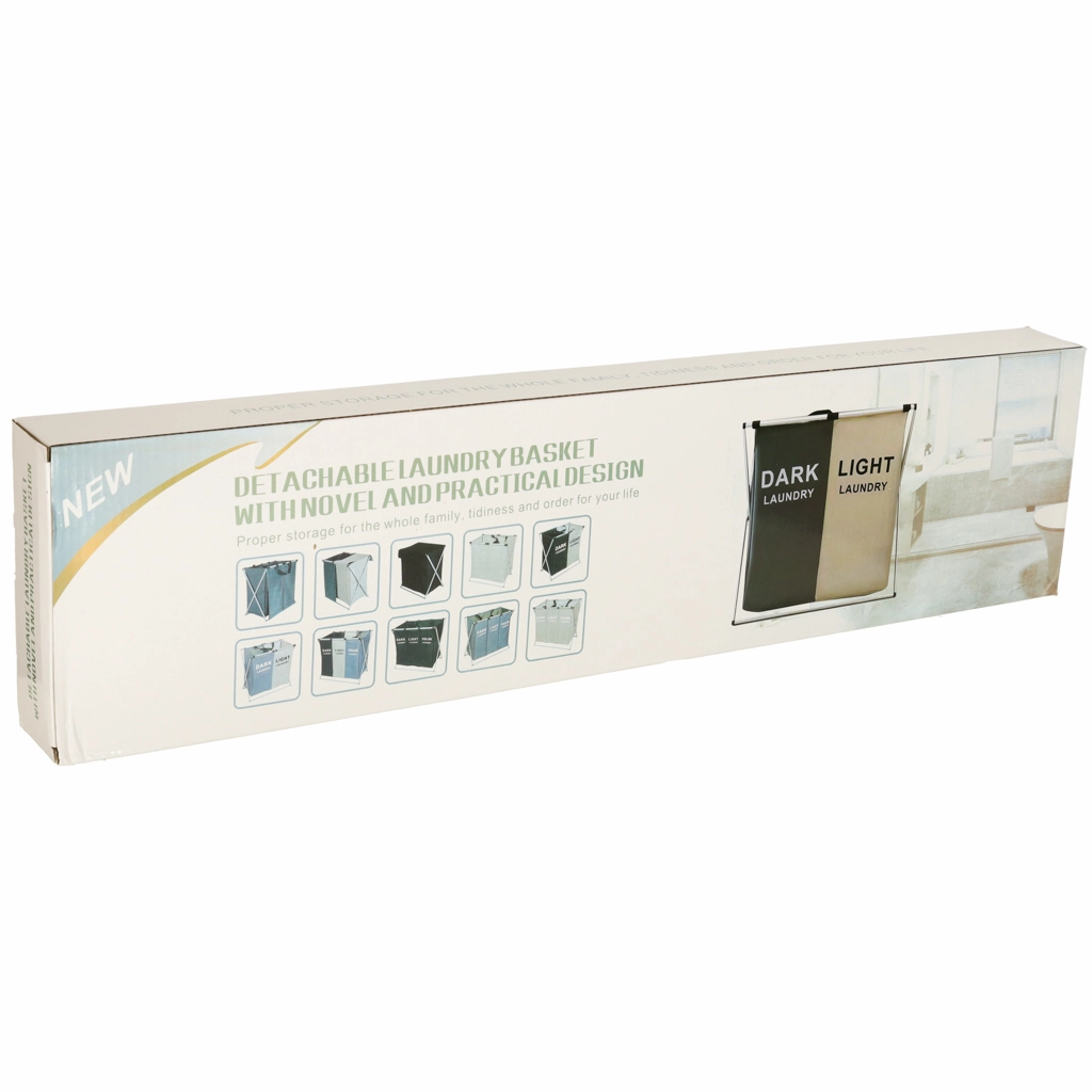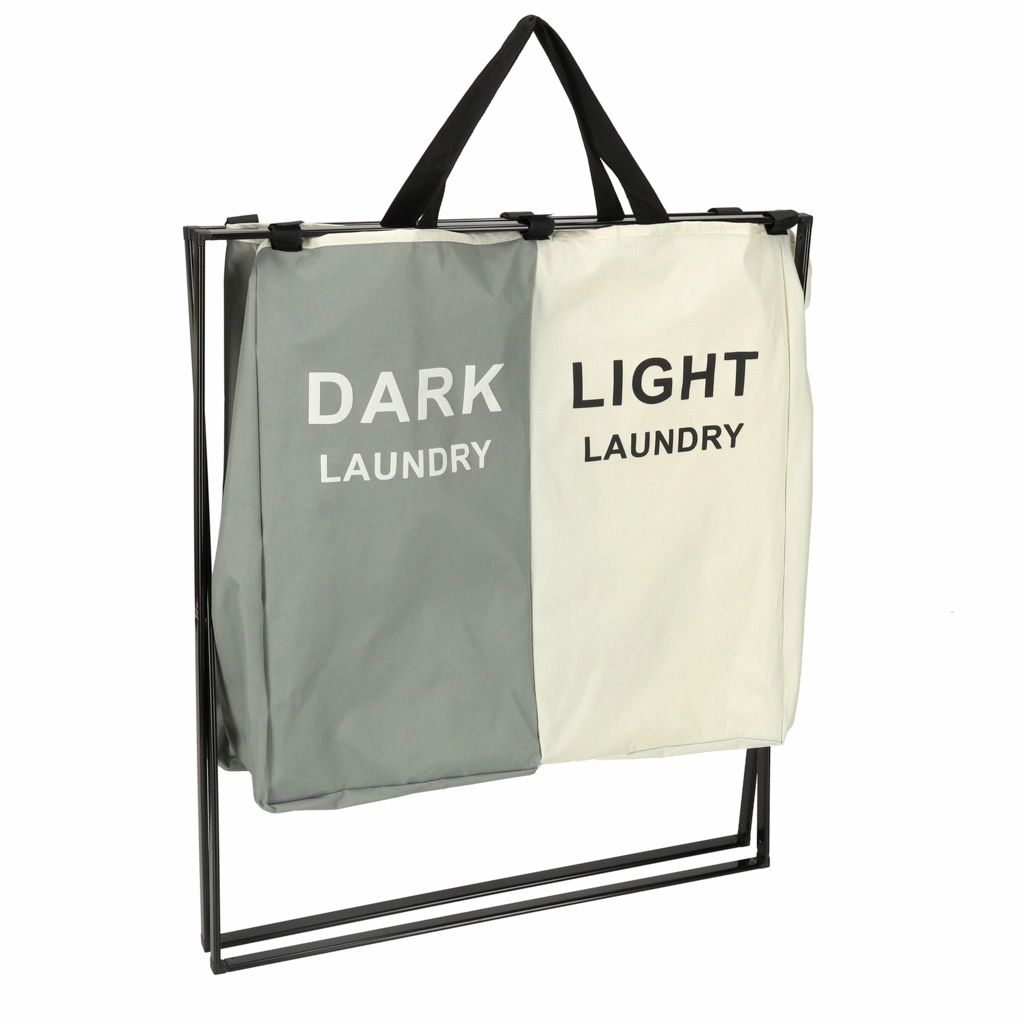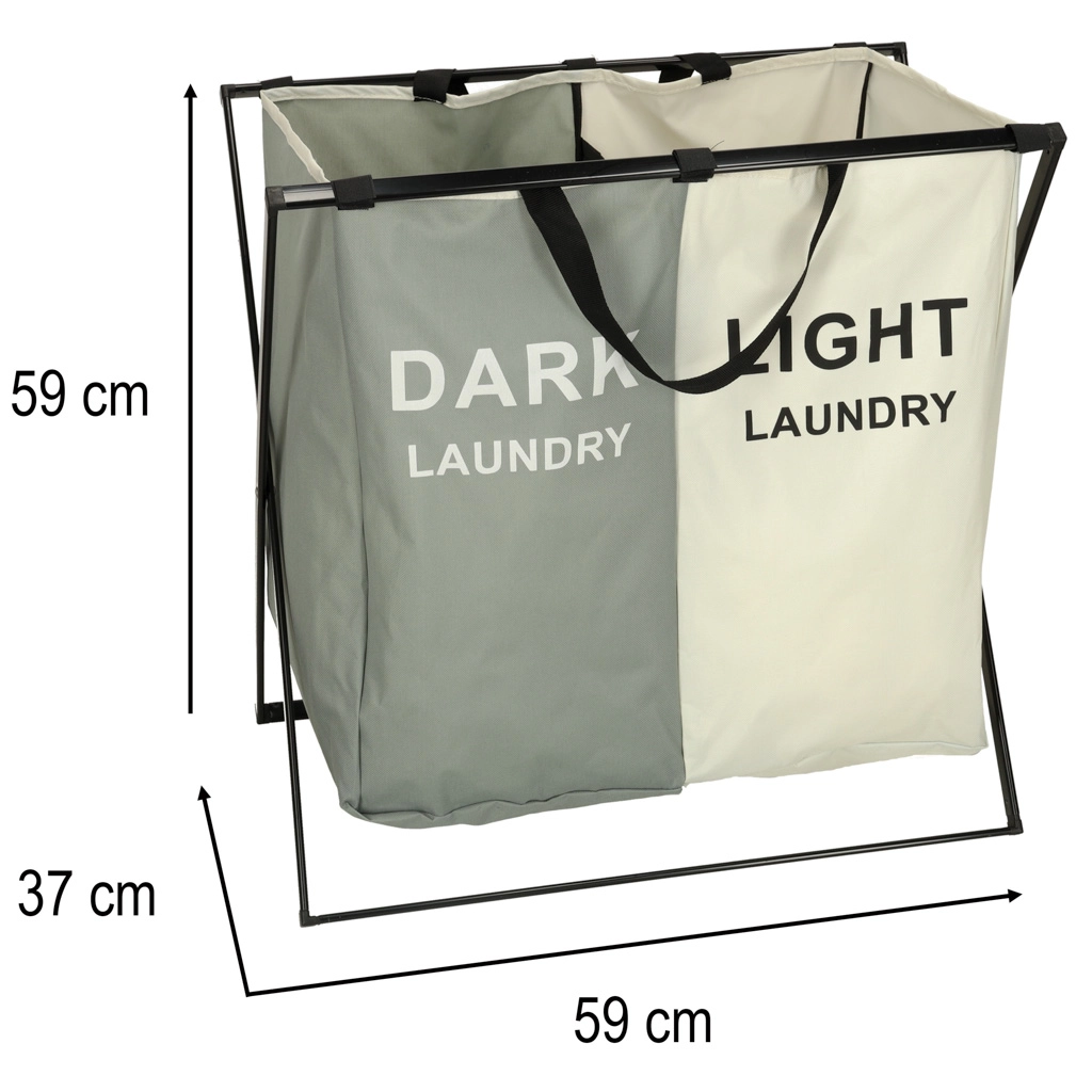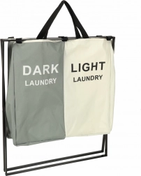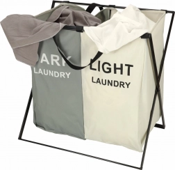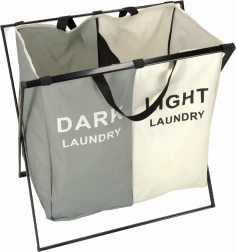 Practical two-compartment laundry basket for quick sorting into light and darkstable aluminum frame, durable polyester fabric bags and compact dimensions 59 × 37 × 59 cm save space and time. Maximum load capacity 10 kg and comfortable handles for easy carrying.