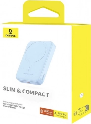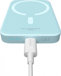 The Baseus power bank allows for charging via USB-C and wirelessly. With charging power up to 20 W, it enables you to charge devices lightning-fast.