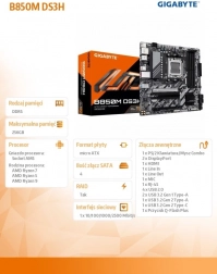 The GIGABYTE B850M DS3H motherboard for the AMD AM5 socket delivers an easy one-click boost to gaming performance with X3D Turbo mode, support for Ryzen 9000/8000/7000 processors, dual-channel DDR5, ultra-fast storage with M.2 PCIe 5.0, and 2.5 GbE networking — all in a practical design with smart EZ-Latch quick-release for screwless installation.