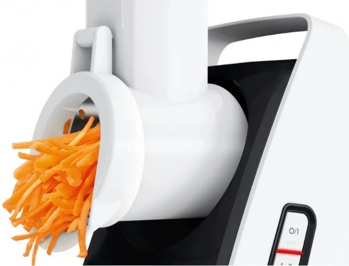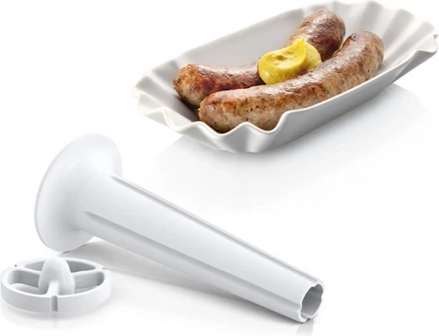 It includes a shredding attachment for slicing and shredding vegetables, cheese, nuts, or chocolate – with no quantity limits. A favorite is the drum for shredding potatoes for potato pancakes. The practical sausage-filling attachment lets you prepare homemade delicacies exactly to your taste – poultry, pork, beef, or vegetarian. The REVERSE function releases ingredients in case of a jam so the appliance is immediately ready to continue.