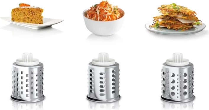 Practical drums for slicing and shredding, including a drum for potato pancakes, plus a sausage-filling attachment expand your options from salads to homemade specialties.