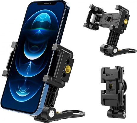 V-shaped rubber inserts hold the phone securely without scratches. Ideal for most smartphones.