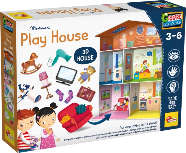 The Montessori game My Home brings children the joy of discovery and learning. Build a beautiful house and use puzzle pieces to furnish each room. Every piece has its place, supporting logical thinking and fine motor development. Ideal for cooperative play or independent activity.