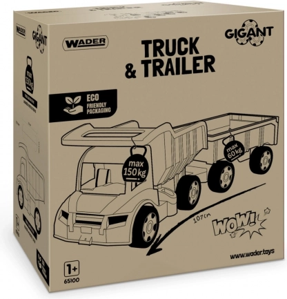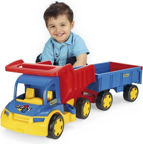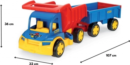 Giant truck with trailer by Wader is a large and durable play set for children. This colorful set provides children with hours of fun, supporting physical coordination and imagination.