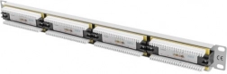 This 24-port Cat6 patch panel is a passive component of structured cabling intended for main and intermediate distribution points. It provides stable performance for gigabit networks, clean termination of twisted pair, and efficient cable management in a 19" rack.