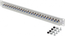 The patch panel with 24 pass-through F-F connectors is an ideal solution for organizing and managing coaxial infrastructure in data, TV, and SAT systems. Thanks to the 19" standard and 1U height, it installs easily into any 19" rack cabinet.