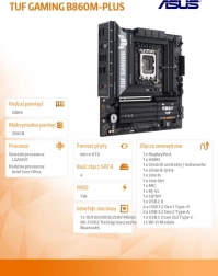 The Asus TUF Gaming B860M-PLUS motherboard is a true gem among motherboards, designed for demanding gamers and tech enthusiasts. With the LGA1851 CPU socket and support for Intel Core Ultra processors, it delivers unmatched performance and stability during intensive use.