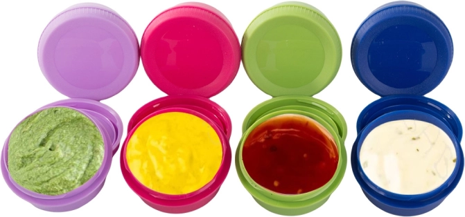 Enjoy your favorite sauces and dips anywhere—these colorful 80 ml containers feature leakproof lids that reliably prevent spills. They’re perfect for lunch boxes, bags, or backpacks and keep contents fresh and hygienically stored.