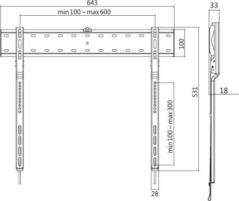 An ultra-thin wall mount for TVs 43–80" offering an exceptionally low profile for a sleek on-wall look, an integrated level for precise installation, and silicone pads to prevent scratches. Quick-release spring locks with pull straps make it easy to mount and remove the TV, while the sturdy steel construction ensures secure support up to 40 kg.