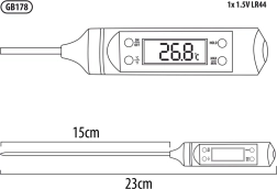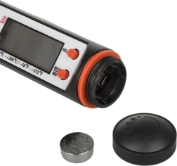 High quality and precision make this probe thermometer an excellent tool for measuring the temperature of meats, cakes, soups, sauces, water, milk, desserts, and other foods. The thermometer is equipped with a penetration probe that you simply insert or immerse into the food for quick and easy temperature readings on the clear display. It is suitable for home kitchens as well as use in restaurants and catering facilities.