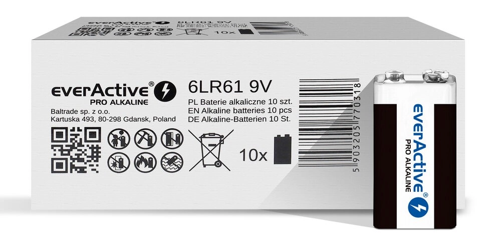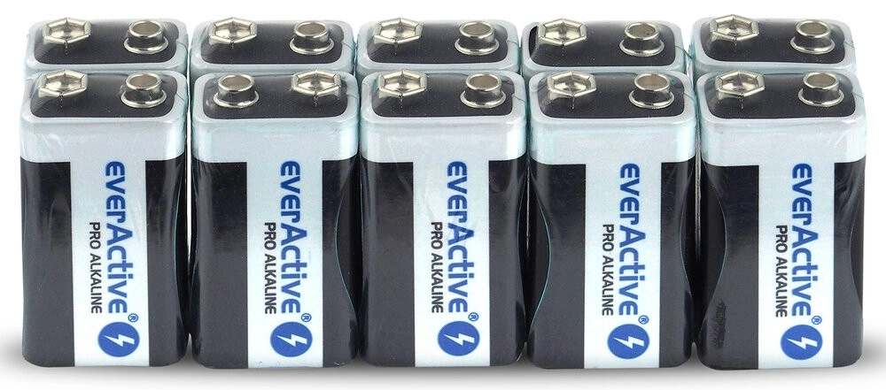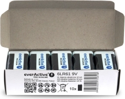 Alkaline 6LR61 (9 V) batteries EVERACTIVE PRO ALKALINE are designed for maximum reliability in demanding conditions. The reinforced, sealed design minimizes the risk of leakage and ensures stable parameters during long storage and operation.