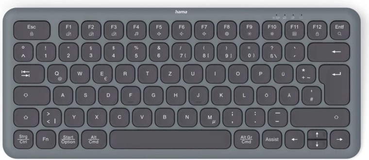 The Hama WK-500 keyboard supports both USB and Bluetooth connections, allowing easy integration with multiple devices.