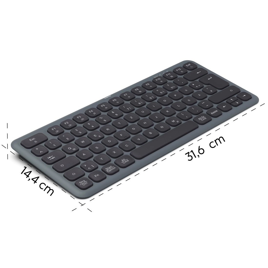 The wireless keyboard Hama WK-500 combines functionality with aesthetics and allows easy connection to multiple devices. Supports simultaneous connection of one USB and two Bluetooth devices with quick switching using one button. Stable connection is ensured by 2.4 GHz and Bluetooth 5.2 technology for a user range up to 10 meters.